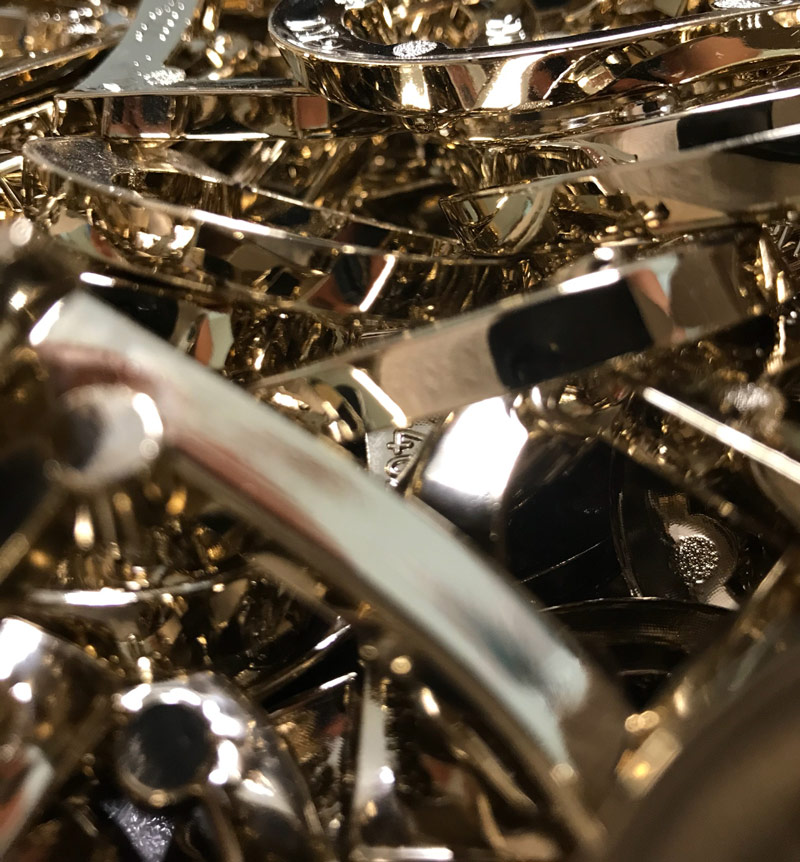 Passando attraverso le diverse fasi di lavorazione, che possono comprendere la smerigliatura e la burattatura, le finiture ottenibili sono diverse: RAME, NICHEL, CROMO, CANNA DI FUCILE, ORO ...